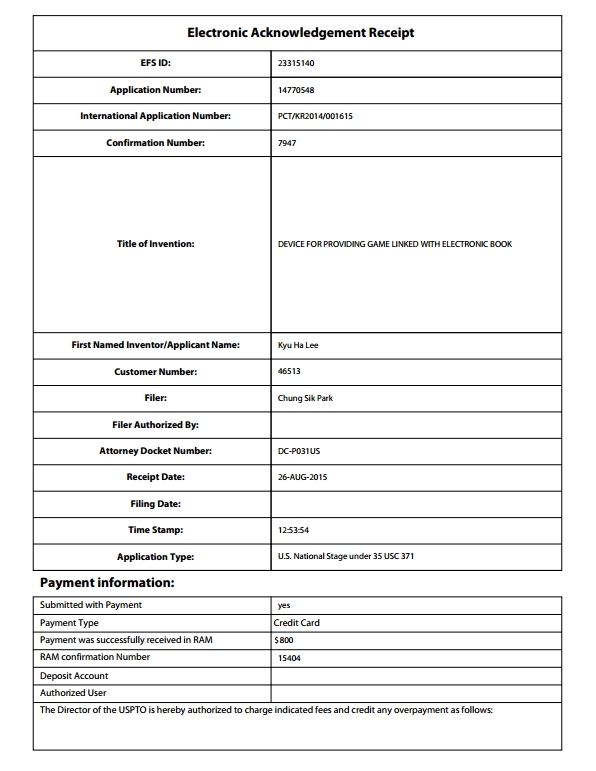 [미국/특허] DEVICE FOR PROVIDING GAME LINKED WITH ELECTRONIC BOOK